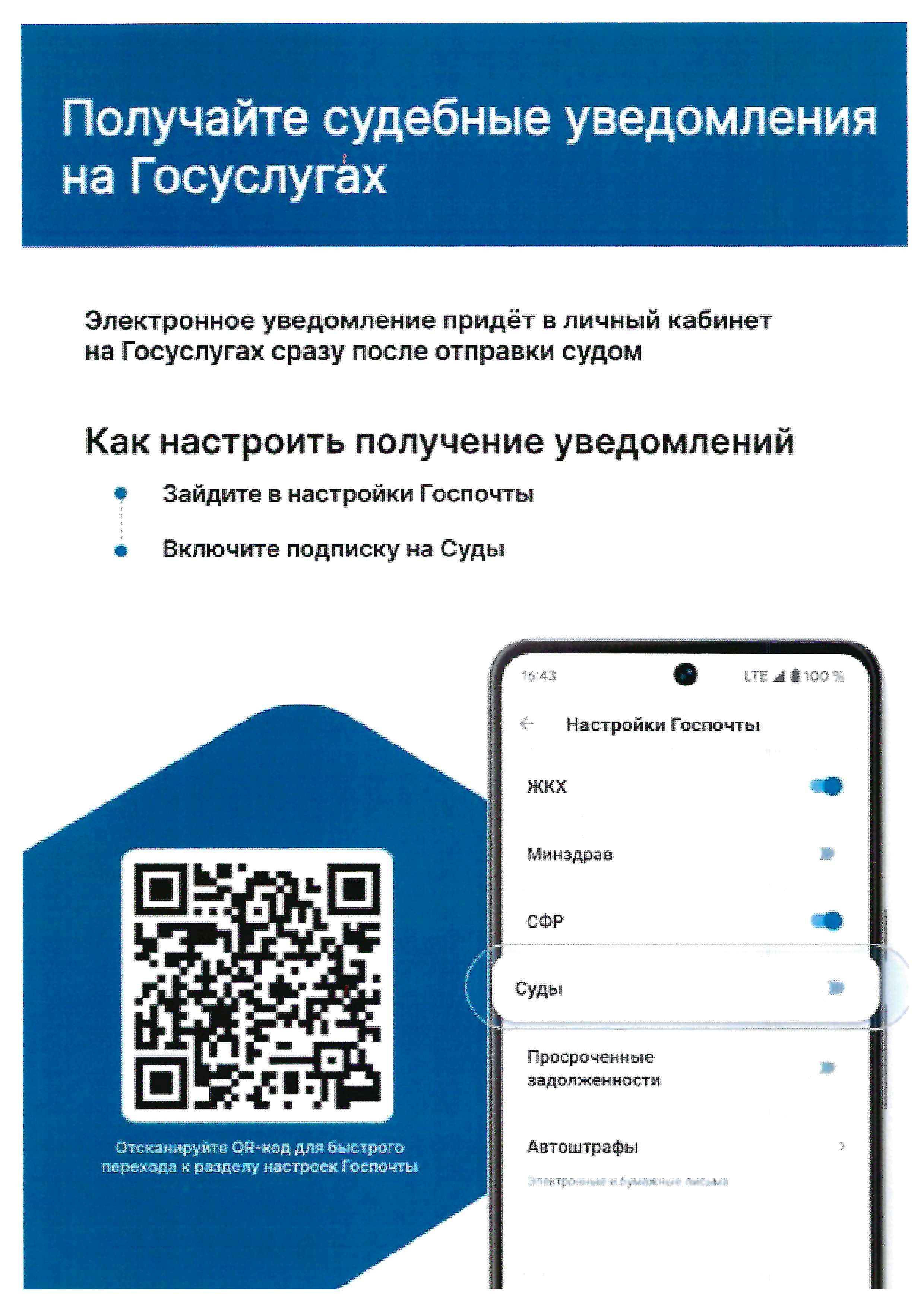 для удобства получения судебной корреспонденции в электронном виде размещено видео с инструкцией по настройке согласия на получение почтовых отправлений на Единый портал государственных и муниципальных услуг.